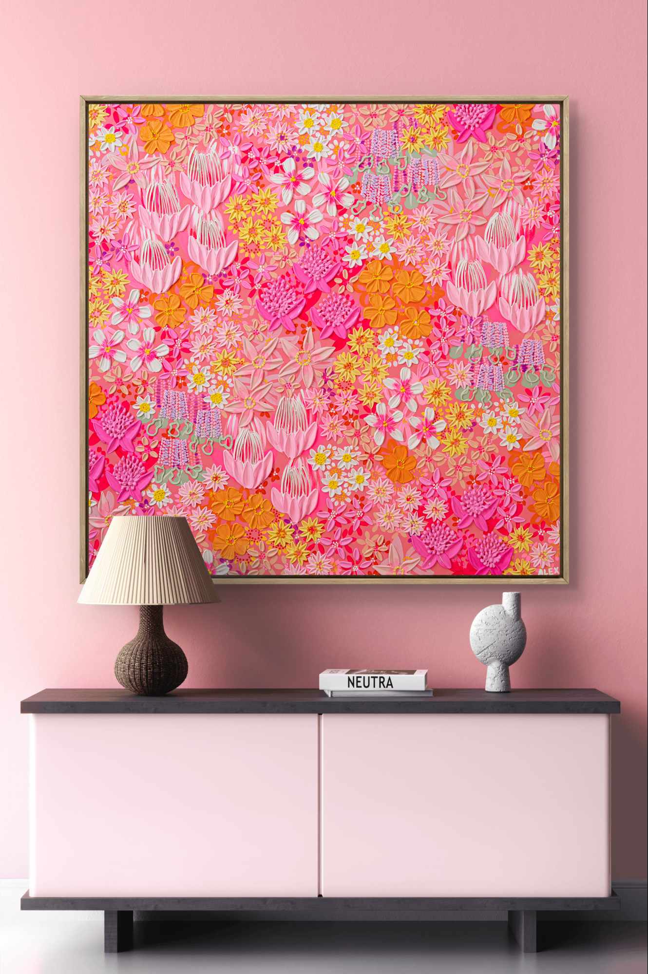 "Protea & Poppy" (Framed Canvas Print)