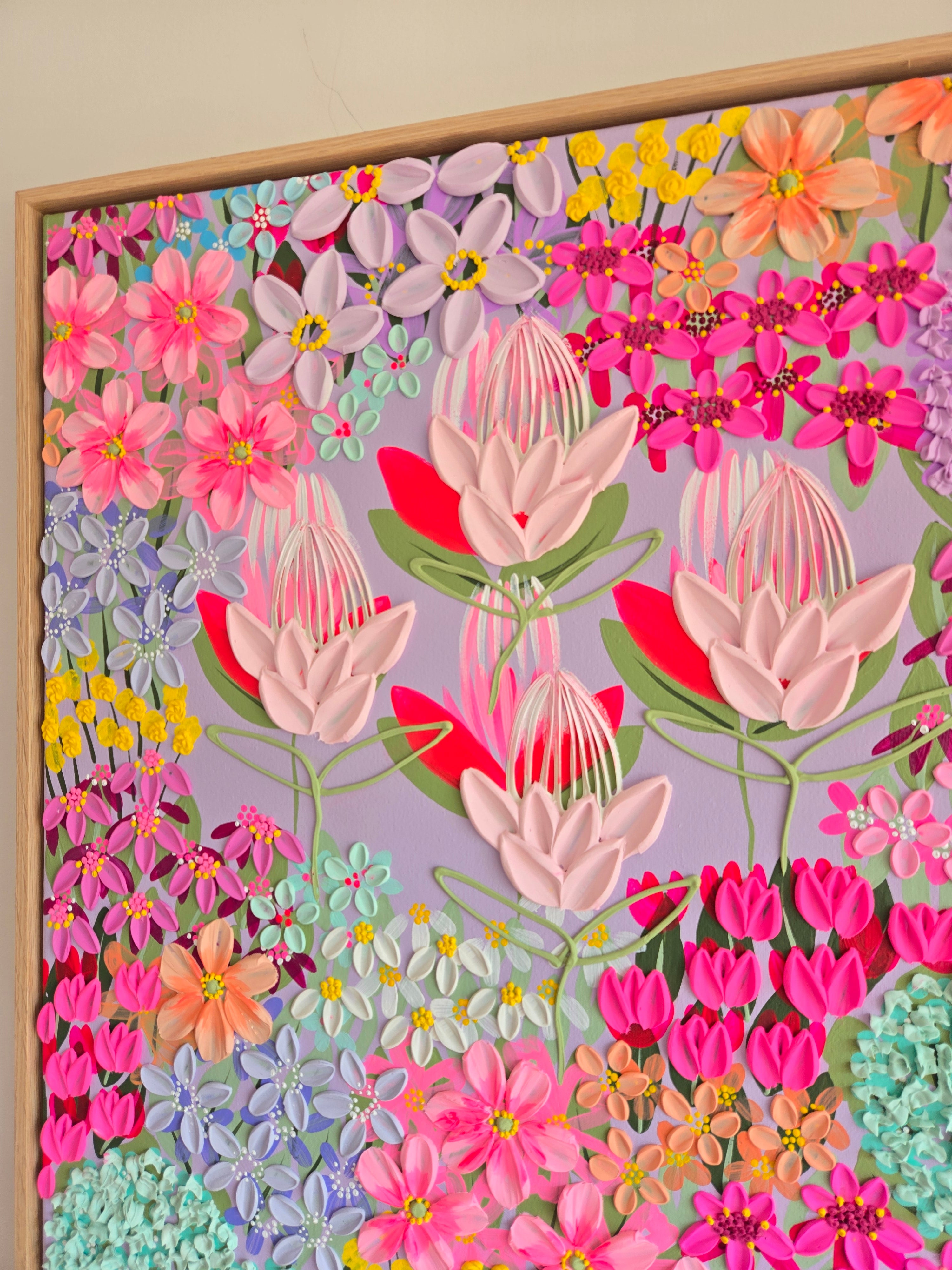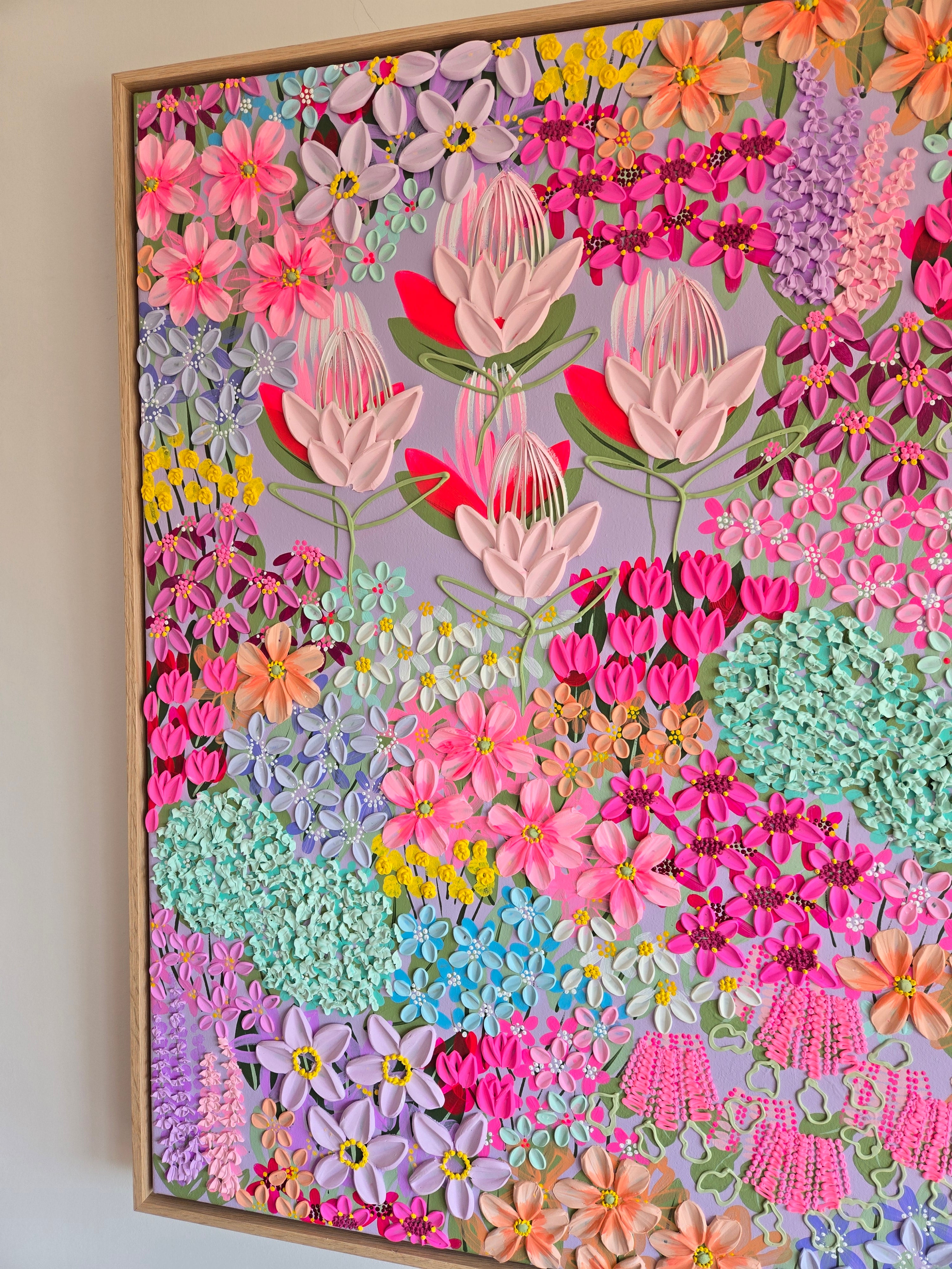 Original artwork by Alex Mason. Acrylic and textured paste on canvas. 120cm x 90cm with a professional Tasmanian Oak floating frame, ready to hang
