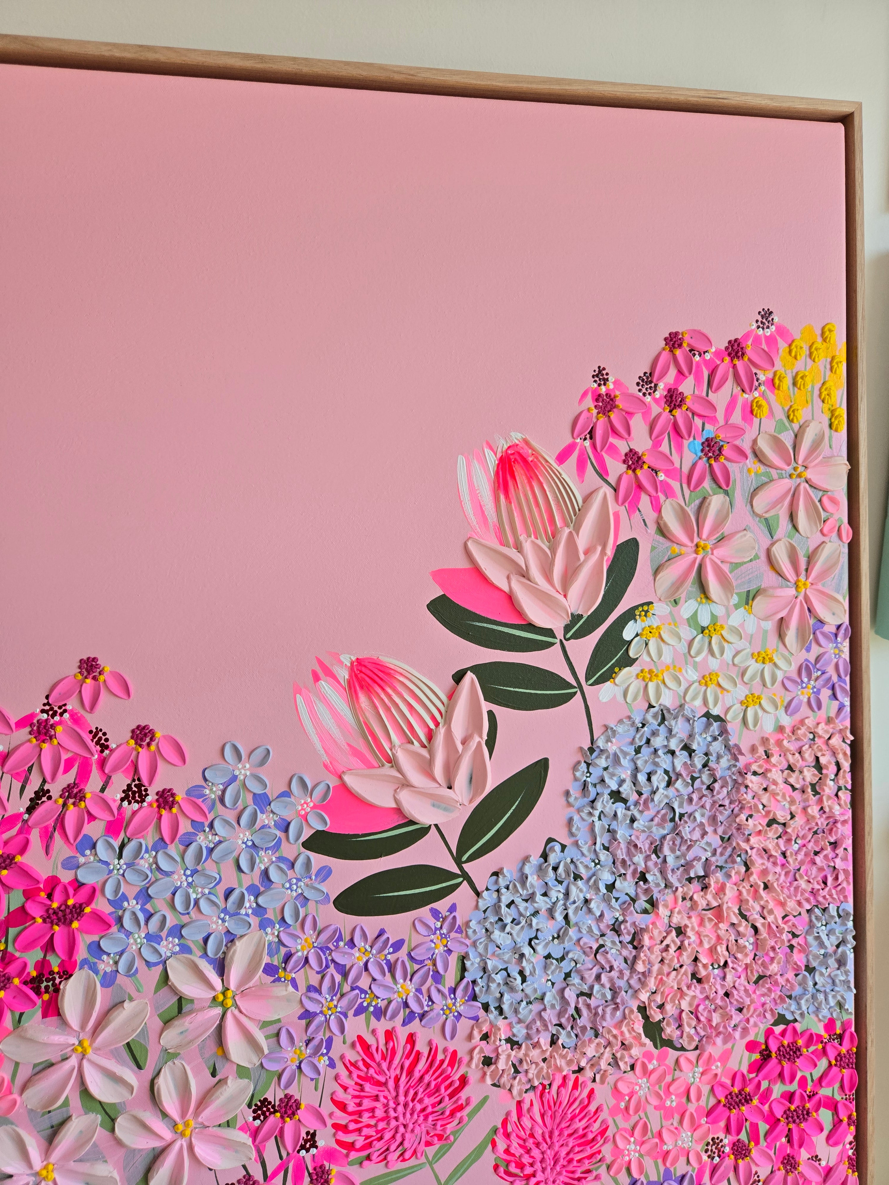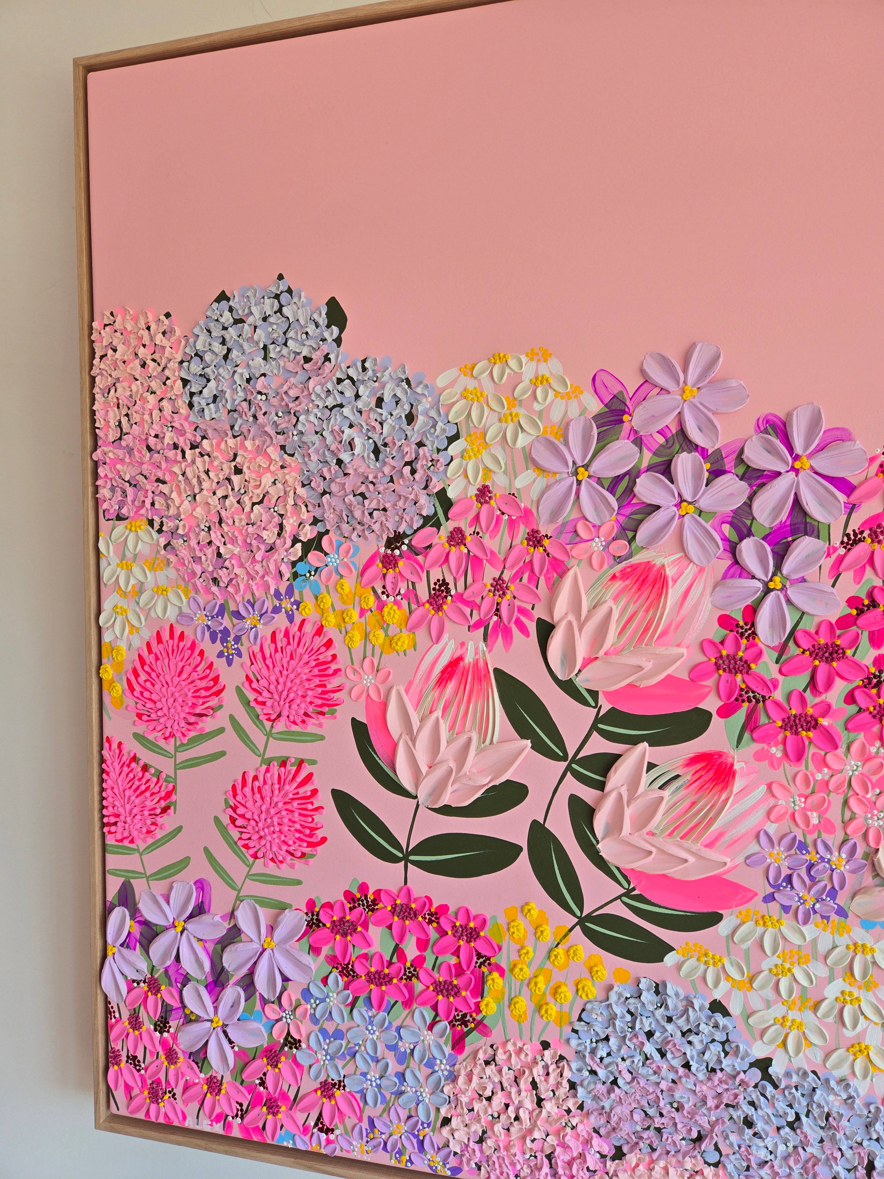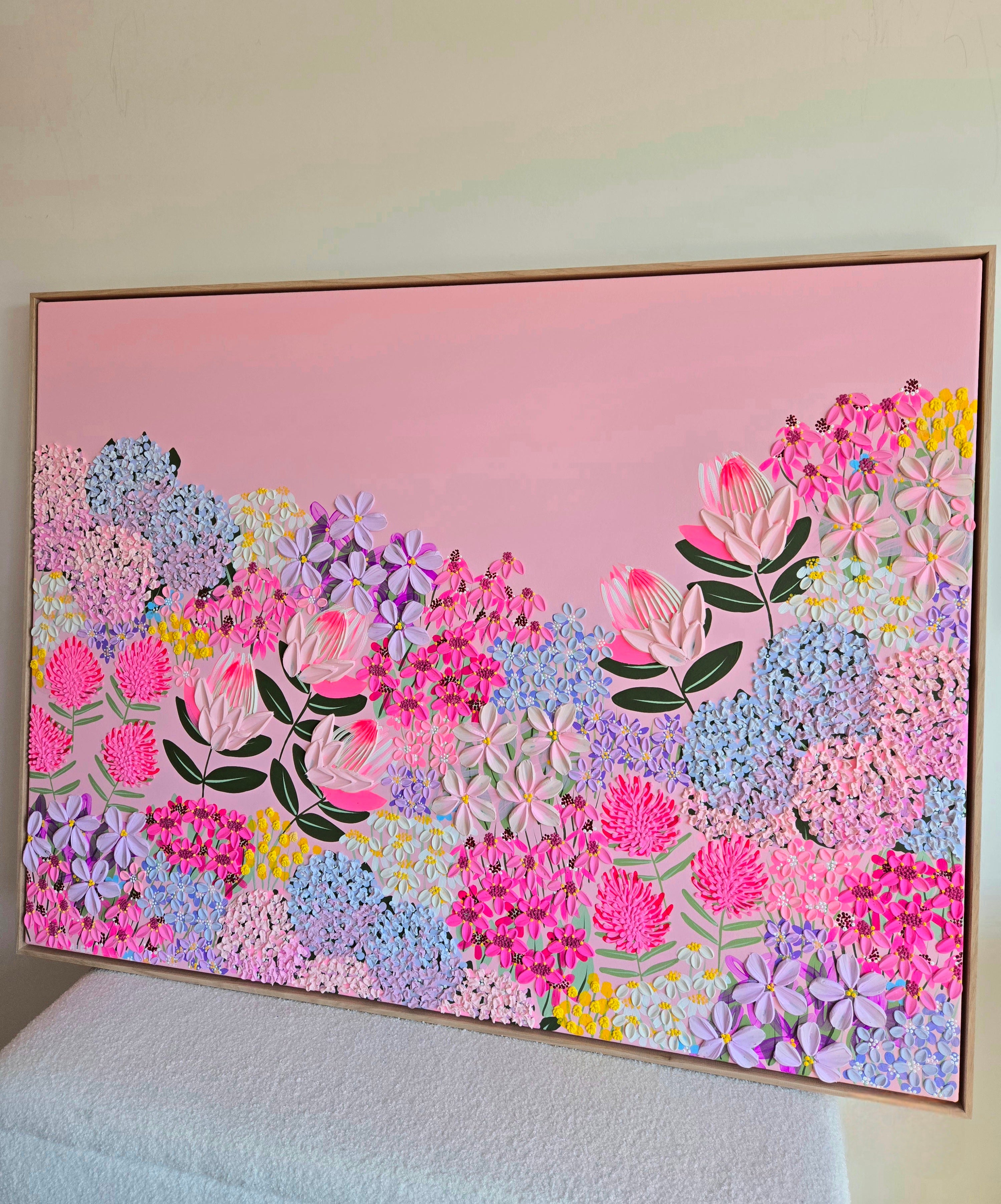 Original artwork by Alex Mason. Acrylic and textured paste on canvas. 120cm x 90cm with a professional Tasmanian Oak floating frame, ready to hang