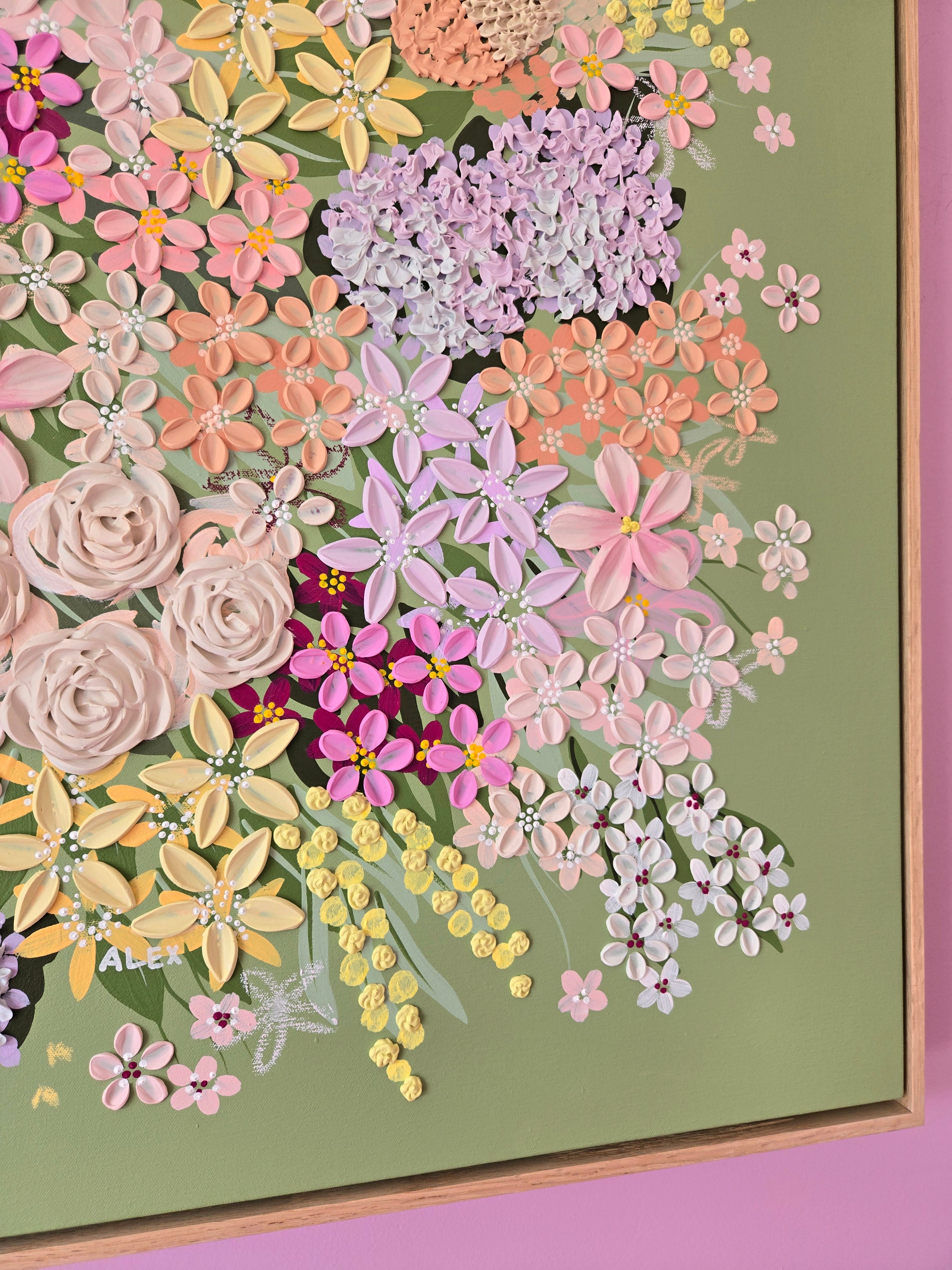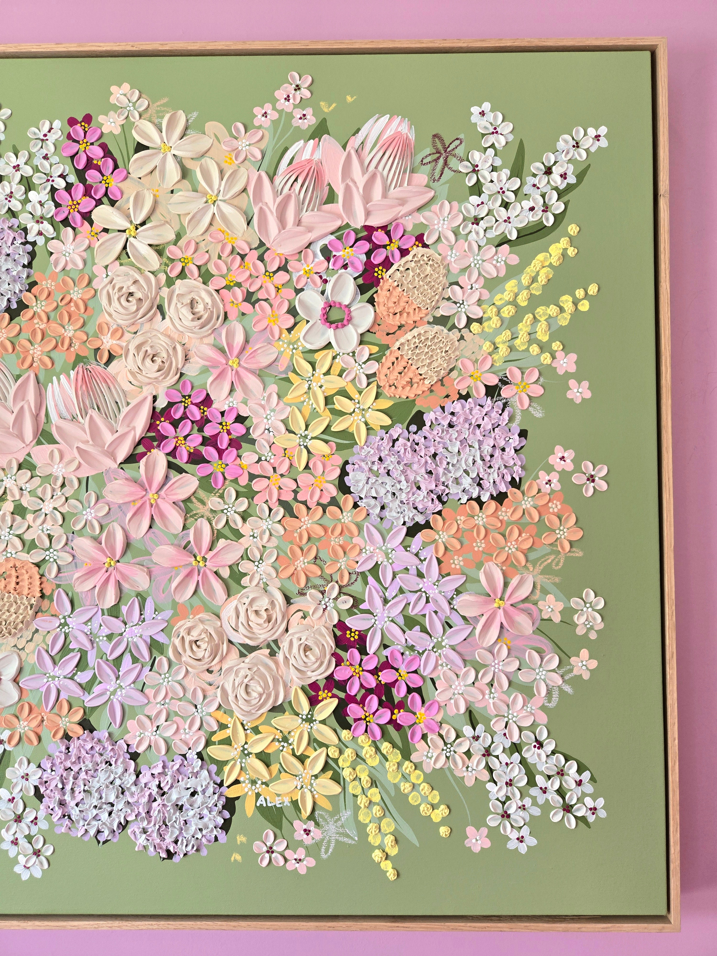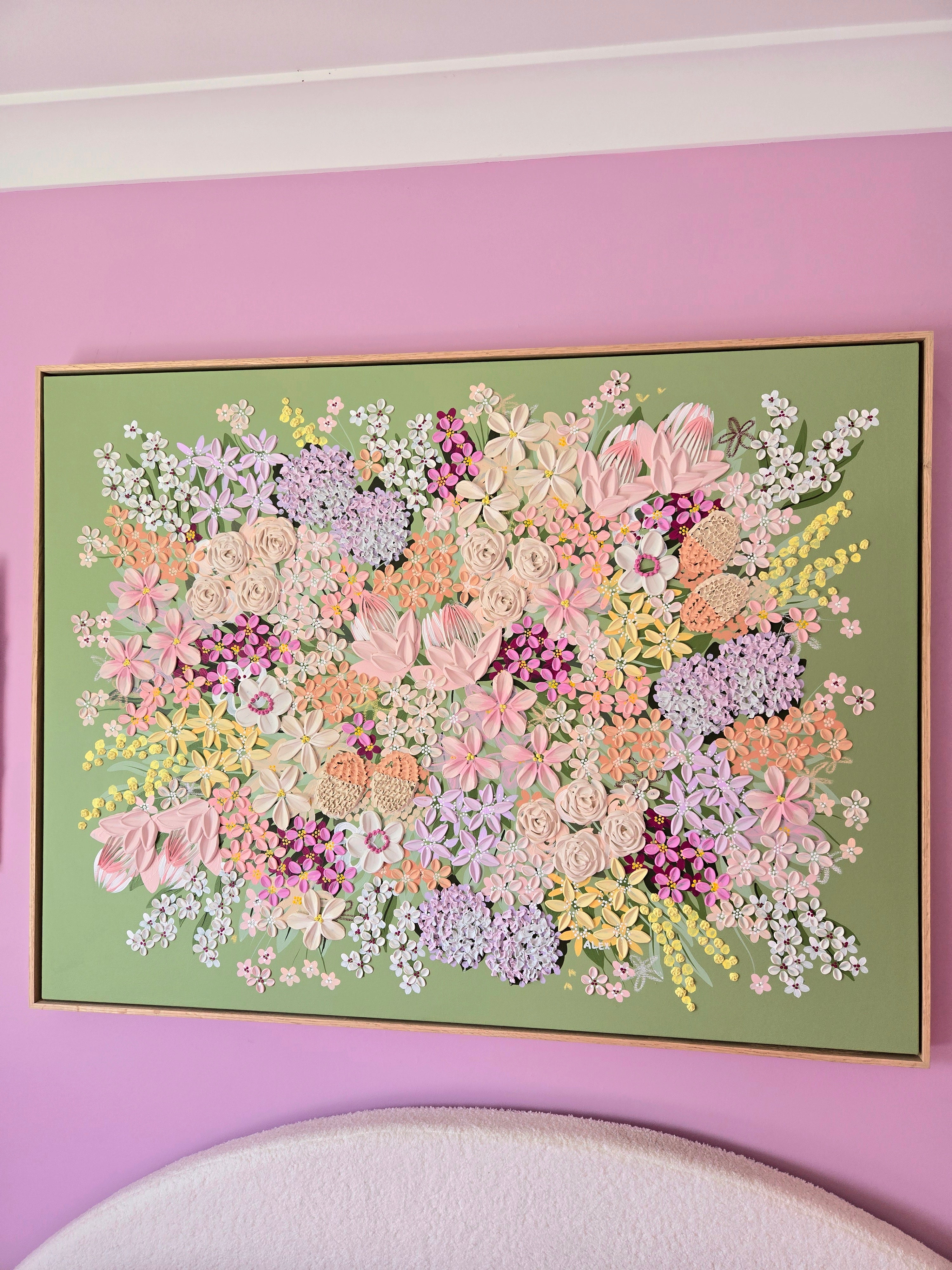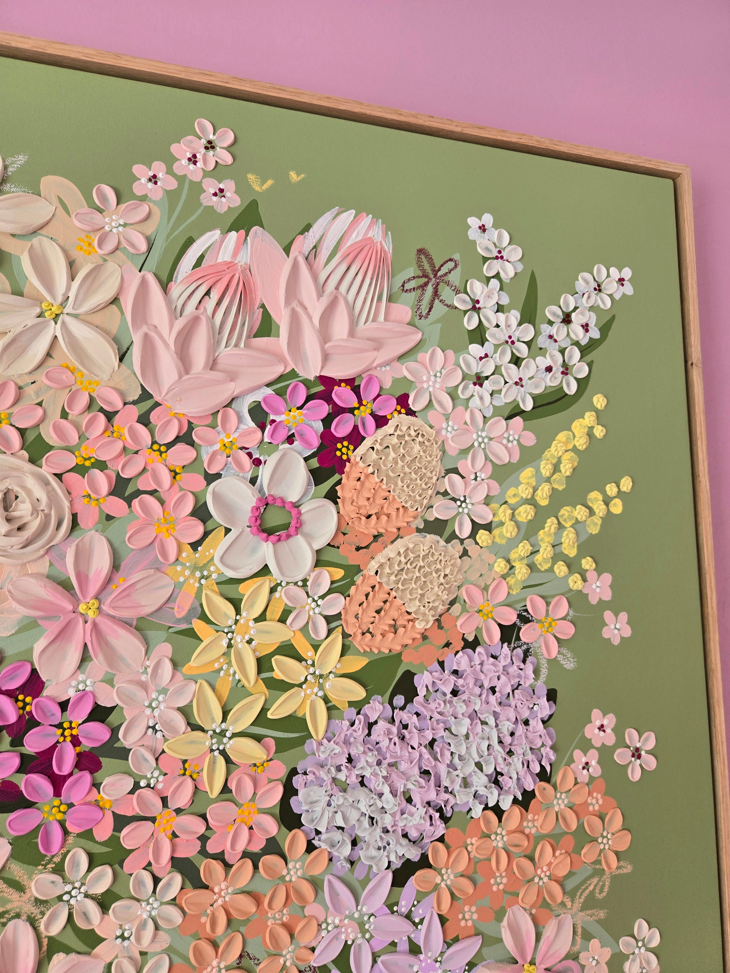 Original artwork by Alex Mason. Acrylic and textured paste on canvas. 120cm x 90cm with a professional Tasmanian Oak floating frame, ready to hang